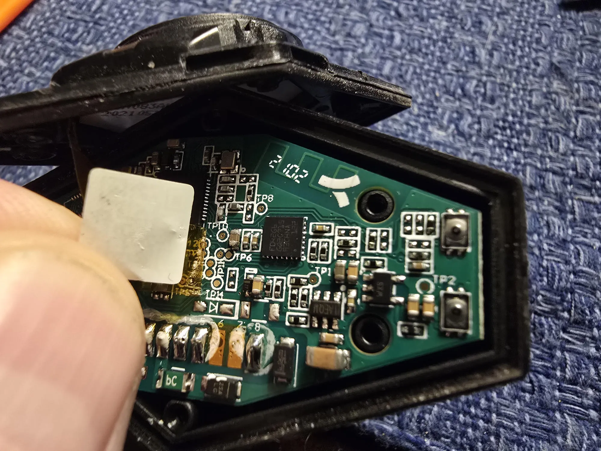 Three male-ended jumper wires to connect the debug probe to the test points. The GND wire will be shimmed into the white connector on the backside of the PCB, and the SW wires will be held in place ont the test points.
